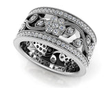 This item features exclusively high-quality natural diamonds, ensuring superior quality and ethical sourcing. For more information about the diamond quality, please do not hesitate to contact us. This intricate, feminine design features a delicate flower formed with diamonds and millgrain detailing. This piece is perfect for a special occasion that will make her fall in love all over again. Create the perfect eternity band with your choice of metal type and diamond quality for an unforgettable expression of your love.