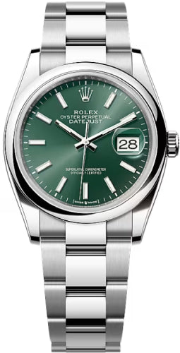 Rolex Datejust 36 Stainless Steel Mint Green Index Dial & Smooth Domed Bezel Oyster Bracelet 126200