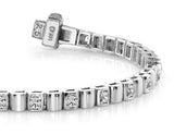 The item exclusively features Lab-Grown Diamonds in FG/VS quality, ensuring premium quality and ethical sourcing. For any inquiries regarding the quality of the stones, please feel free to contact us. Alternating solid metal boxes and contrasting boxes housing fabulous diamonds make this bracelet truly a stand-out! It's available in 3 different sizes, and features total diamond weights of from 0.8 carat to 1.5 carats. This piece can be carefully crafted for you in your choice of metals . gold or platinum . so.why not add this to your jewelry collection today!