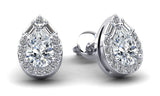 The item exclusively features Lab-Grown Diamonds in FG/VS quality, ensuring premium quality and ethical sourcing. For any inquiries regarding the quality of the stones, please feel free to contact us. These stunning diamond stud earrings feature pear shape center diamonds, surrounded by brilliant cut round diamonds and baguette cut diamonds. The effect is truly stunning, and the earrings sparkle from all angles. You may further customize these stud earrings by selecting the type of metal, diamond quality, and size.