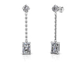 The item exclusively features Lab-Grown Diamonds in FG/VS quality, ensuring premium quality and ethical sourcing. For any inquiries regarding the quality of the stones, please feel free to contact us. Bold and beautiful these elegant earrings will capture your heart. A brilliant round diamond cascades down to highlight the stunning emerald shaped diamond that completes the look. Choose your perfect pair today in either a gold or platinum setting. "