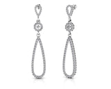 The item exclusively features Lab-Grown Diamonds in FG/VS quality, ensuring premium quality and ethical sourcing. For any inquiries regarding the quality of the stones, please feel free to contact us. The top of these wonderful earrings is a dainty, diamond lined teardrop. A lovely circle of diamonds with a fabulous prong-set seems to 'float' in the middle. And a lovely, long diamond teardrop dangles perfectly below. The result says elegant! It's available in gold or platinum, and in your choice of 3 different combinations of diamonds totaling 1.1, 2, or 2.6 carats total diamond weight! Surprise her with this one today! "