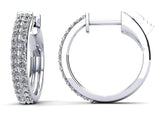 The item exclusively features Lab-Grown Diamonds in FG/VS quality, ensuring premium quality and ethical sourcing. For any inquiries regarding the quality of the stones, please feel free to contact us. These beautiful diamond hoop earrings feature brilliant cut round diamonds set long the front of the earrings. You may customize these earrings by selecting your choice of metal type and diamond quality.