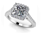 The item exclusively features Lab-Grown Diamonds in FG/VS quality, ensuring premium quality and ethical sourcing. For any inquiries regarding the quality of the stones, please feel free to contact us. This princess cut engagement ring is a beautiful combination of simplicity and elegance. Wrapped around the princess cut center diamond is a single row of diamonds that compile the halo. The single row of diamonds on the shank provide a classic look. Complete your engagement ring by selecting the metal type, total carat weight, center diamond quality and ring size.