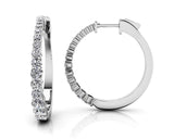 The item exclusively features Lab-Grown Diamonds in FG/VS quality, ensuring premium quality and ethical sourcing. For any inquiries regarding the quality of the stones, please feel free to contact us. These unique and elegant diamond hoop earrings feature an icy row of round diamonds that taper towards the top. Measuring .90 inches in height (23.5 mm). Design yours in either a gold or platinum setting.