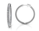 The item exclusively features Lab-Grown Diamonds in FG/VS quality, ensuring premium quality and ethical sourcing. For any inquiries regarding the quality of the stones, please feel free to contact us. An elegant curved prong setting adds an interesting element to the design of these diamond hoop earrings. With a unique inside out hoop design, there is diamond sparkle on the front side of the earrings and along the interior. These medium sized hoop earrings are available in 4 different sizes including 1.44, 1.94, 2.44, and 3.10 carats of total diamond weight. The height of these hoops measures at .98.. Customize a pair of these lovely diamond hoops in gold or platinum today!