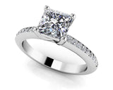 The item exclusively features Lab-Grown Diamonds in FG/VS quality, ensuring premium quality and ethical sourcing. For any inquiries regarding the quality of the stones, please feel free to contact us. Propose to the love of your life with an engagement ring that will show her just how special she really is. The engagement ring features a princess center diamond and round diamonds in a channel setting. Tailor the ring to your preference of metal type, total carat weight, and diamond quality and take her breath away!