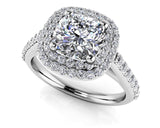 Double Halo Cushion Cut Lab-Grown Diamond Engagement Ring with 1.84 ct. (1.25 ct. center diamond)