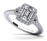 Emerald Cut Halo Diamond Engagement Ring with Split Shank Lab-Grown Diamond with 1.94 ct. (1.50 ct. center diamond)