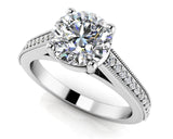 The item exclusively features Lab-Grown Diamonds in FG/VS quality, ensuring premium quality and ethical sourcing. For any inquiries regarding the quality of the stones, please feel free to contact us. Vintage twist on a classic diamond engagement ring! This engagement ring is sure to show that you notice the details in life and about her! Milgrain features on either sides of the diamond rows on both bands showcase a design that is sure to delight. The center stone is a classic round diamond set by four prongs. The shank of each band has a row of round diamonds set along the top half. This milgrain detailed diamond engagement ring is elegant with a touch of vintage.