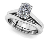 The item exclusively features Lab-Grown Diamonds in FG/VS quality, ensuring premium quality and ethical sourcing. For any inquiries regarding the quality of the stones, please feel free to contact us. This design is a brilliant remake of a classic oval bridal set, courtesy of our design team! The oval diamond royally sits in a four prong. The simple shank and cathedral setting creates a stunning and classic look with a simple band to match the design. Customize the bridal set by selecting the metal type, total carat weight, diamond quality and ring size.