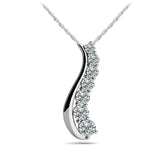 The item exclusively features Lab-Grown Diamonds in FG/VS quality, ensuring premium quality and ethical sourcing. For any inquiries regarding the quality of the stones, please feel free to contact us. This is truly a 'twist' on a classic, journey pendant. The round, prong set stones look fabulous as they gradually increase in size from the top to the bottom. What's unique about this setting is the gold or platinum that curves alongside the stones. It adds an entirely exquisite dimension to the piece! Available in 4 different combinations, ranging from �?�¼ carat to 1 carat total diamond weight, this just might be the one that makes her say .I love you. all over again!