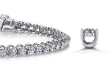 The item exclusively features Lab-Grown Diamonds in FG/VS quality, ensuring premium quality and ethical sourcing. For any inquiries regarding the quality of the stones, please feel free to contact us. If you're looking for a jewelry purchase that gives you options, you've come to the right place! This incredible bracelet is available in 10 different sizes, ranging from 1 carat to 10 carats total diamond weight! Each lovely, round, prong set diamond is carefully nestled in a 'scoop link' that scoops just below each brilliant stone. The effect is very eye catching. You can choose this piece in gold or platinum . so go on . play designer . this one's a perfect option!