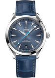 Omega Aqua Terra 150M Co-Axial Master Chronometer Watch - 41 mm Steel Case - Blue Dial - Blue Leather Strap - 220.13.41.21.03.002