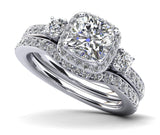 Cushion Cut Halo Diamond Bridal Set Ring with Side Stones Diamond with 2.32 ct. (1.50 ct. center diamond)