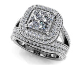 Exquisite Double Halo Diamond Bridal Set Diamond with 1.97 ct. (1.00 ct. center diamond)