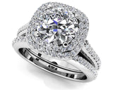 Round Halo Diamond Double Frame Bridal Set Diamond with 1.59 ct. (1.00 ct. center diamond) - Luxury Time NYC