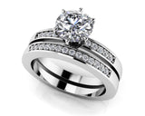 This item features exclusively high-quality natural diamonds, ensuring superior quality and ethical sourcing. For more information about the diamond quality, please do not hesitate to contact us. This lovely bridal set shows her that you wish there were extra time each day for you to be together! It features 25 diamonds in total, including a fabulous center stone in a size of your choice. The center stone is a fabulous, round diamond, carefully set in a classic 6 prong setting. We've placed 5 diamonds on either side of it, to add shimmer and shine. The band features 14 more diamonds, and the combination will truly take her breath away! What a fabulous way to start your life together!