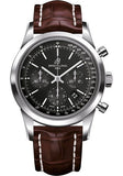 Breitling Transocean Chronograph Watch - Steel - Black Dial - Brown Croco Strap - Tang Buckle - AB015212/BA99/739P/A20BA.1
