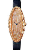 Cartier Baignoire Allongee Watch - 47 mm Pink Gold Case - Diamond Dial - Midnight Blue Strap - WJBA0016