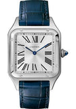 Cartier Santos-Dumont Watch - 43.5 mm Steel Case - Silver Dial - Navy Blue Strap - WSSA0022