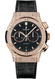 Hublot Classic Fusion Chronograph King Gold Pave Watch - 42 mm - Black Dial - Black Rubber and Leather Strap-541.OX.1181.LR.1704