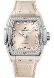 Hublot Spirit of Big Bang Beige Ceramic Titanium Diamonds Watch - 39 mm - Beige Dial - White Rubber and Beige Alligator Strap-665.CZ.891B.LR.1204
