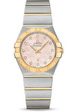 Omega Constellation Quartz Watch - 27 mm Steel Case - 18K Yellow Gold Bezel - Pink Mother-Of-Pearl Diamond Dial - 123.20.27.60.57.005