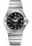 Omega Gents Constellation Chronometer Watch - 38 mm Brushed Steel Case - Black Diamond Dial - 123.10.38.21.51.001