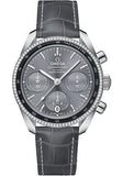 Omega Speedmaster Co-Axial Chronograph Watch - 38 mm Steel Case - Dual Diamond Bezel - Sun Brushed Grey Dial - Grey Leather Strap - 324.38.38.50.06.001