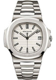 40mm (at 10-4 o'clock) stainless steel case, sapphire crystal back, silvery white dial with gold applied hour markers with luminescent coating, self-winding Caliber 324 S C movement with date, center sweep seconds hand, approximately 35-45 hours of power reserve, stainless steel bracelet Nautilus fold-over clasp. Water resistant to 120 meters.