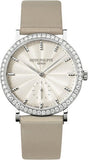 Patek Philippe Calatrava Ladies 31mm Cream Guillouche Diamond Bezel White Gold Leather Manual | 7120G-001