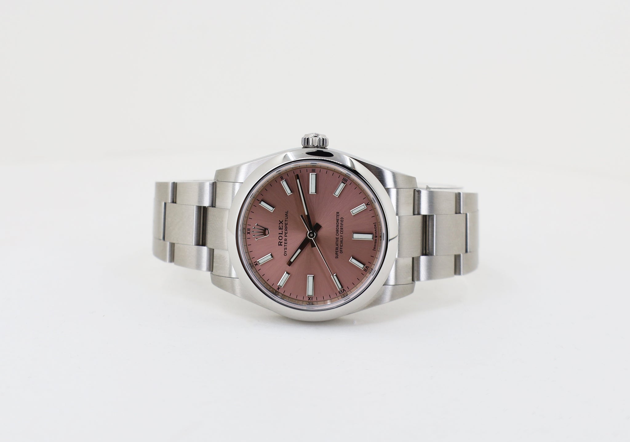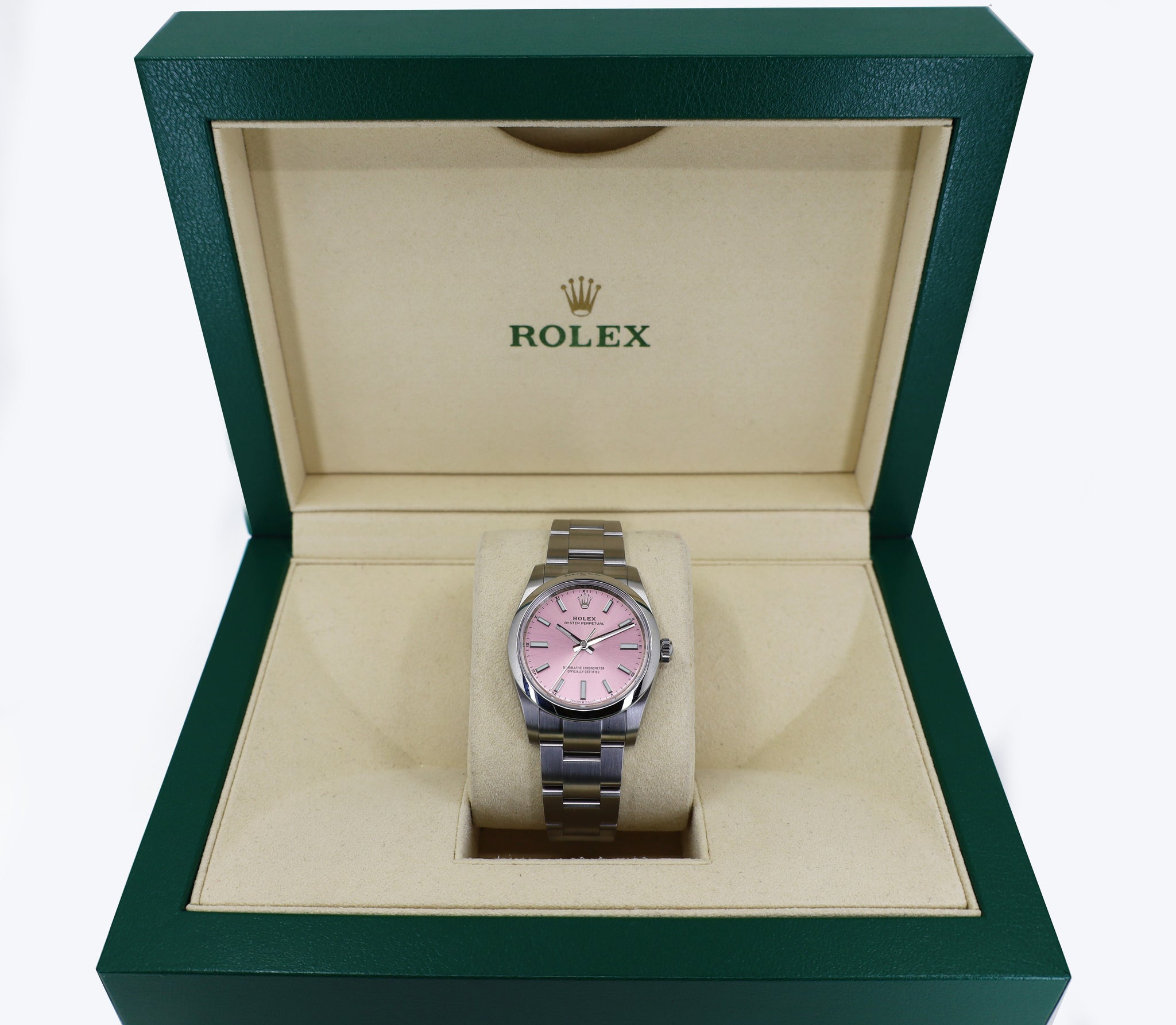 Rolex Oyster Perpetual 34 Watch - Domed Bezel - Pink Index Dial - Oyster Bracelet - 124200 pio