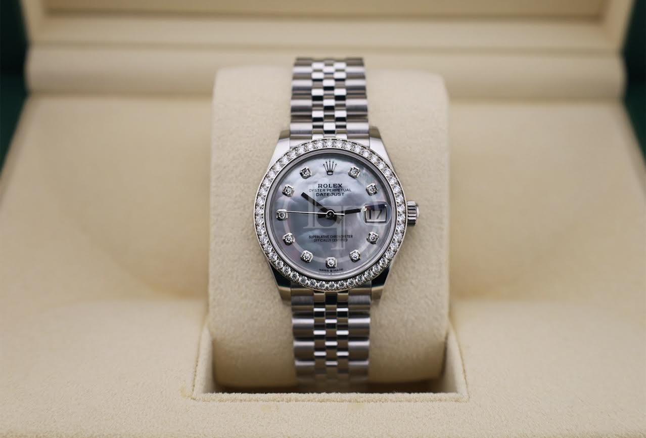 Rolex Steel and White Gold Datejust 31 Watch - Diamond Bezel - White Mother-Of-Pearl Diamond Dial - Oyster Bracelet - 278384RBR mdo