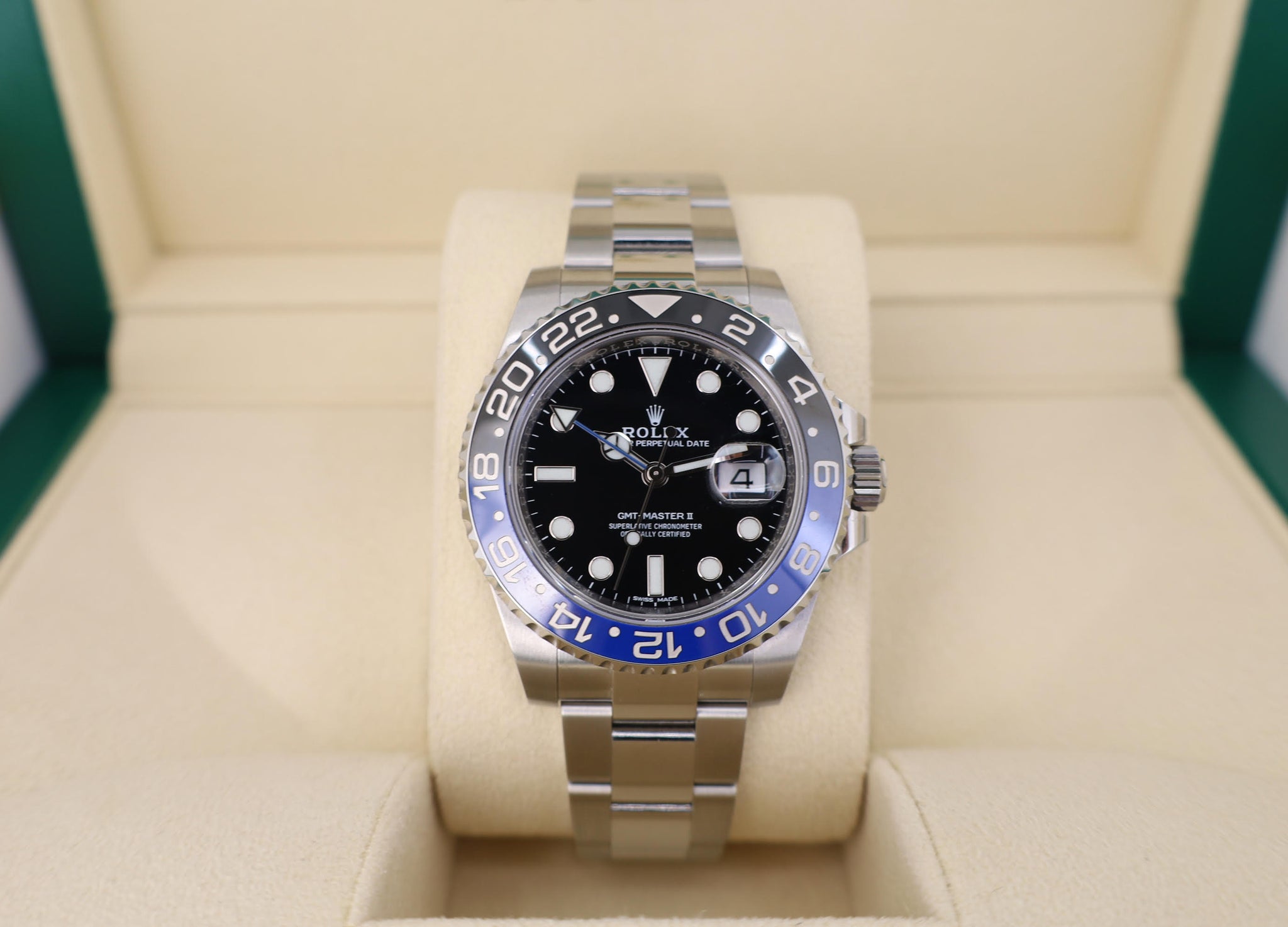 Rolex Steel GMT-Master II 40 Watch - Black And Blue Batman Bezel - Black Dial - Oyster Bracelet - 116710BLNR