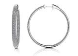 This item features exclusively high-quality natural diamonds, ensuring superior quality and ethical sourcing. For more information about the diamond quality, please do not hesitate to contact us. These gorgeous diamond hoop earrings have a wonderful inside out design. The front of each hoop is lined with three rows of pave set diamonds. The inside is also lined with three rows of sparkling diamonds so when from the front and side you can see radiant diamond sparkle. There are 4 sizes to choose from ranging from 2.37 carats to 4.44 carats of total diamond weight. Measuring at 1.17 inches, these large hoop earrings add the perfect amount of sparkle to your look! Customize a pair for yourself or someone special in yellow gold, white gold or platinum today! These hoop earrings are also offered in other sizes.