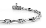 This item features exclusively high-quality natural diamonds, ensuring superior quality and ethical sourcing. For more information about the diamond quality, please do not hesitate to contact us. Here's a wonderful bracelet that features five bezel set diamonds connected together with lovely gold or platinum columns. The column links continue the rest of the way around the bracelet, making a beautiful design. You can choose to have us carefully craft it yellow gold, white gold or platinum and in 4 different sizes; from .25 ct. up to 1.00 carat total diamond weight. Customize this one today!