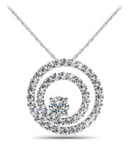 The item exclusively features Lab-Grown Diamonds in FG/VS quality, ensuring premium quality and ethical sourcing. For any inquiries regarding the quality of the stones, please feel free to contact us. Here's a piece that's a little left of center! Two fabulous diamond circles, one inside the other adorn this piece.but as if to add a little 'surprise' . we've carefully prong-set a round diamond inside the inner-circle, and placed it slightly to the left. It is available in gold or platinum, and in 3 different stone combinations, ranging from half a carat to 1.5 carats total diamond weight. It's brilliant, glistening . and unexpected.just like the lucky lady who'll wear it!