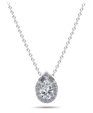 The item exclusively features Lab-Grown Diamonds in FG/VS quality, ensuring premium quality and ethical sourcing. For any inquiries regarding the quality of the stones, please feel free to contact us. This stunning diamond necklace features a pear shape center diamond, surrounded by brilliant cut round diamonds and baguette cut diamonds. The effect is truly stunning and the necklace sparkles from all angles. You may further customize this necklace by selecting the type of metal, diamond quality, size, and chain length.