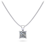 The item exclusively features Lab-Grown Diamonds in FG/VS quality, ensuring premium quality and ethical sourcing. For any inquiries regarding the quality of the stones, please feel free to contact us. This stunning pendant showcases a princess cut diamond within a four-prong setting. Choose yours in either 14 or 18k yellow, rose or white gold or platinum.
