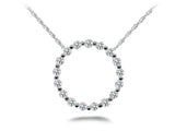 The item exclusively features Lab-Grown Diamonds in FG/VS quality, ensuring premium quality and ethical sourcing. For any inquiries regarding the quality of the stones, please feel free to contact us. Circles are on the leading edge in the design world . whether it's for d�?�©cor, fashion, or jewelry. Here's a fabulous piece that tells the world you're on the leading edge too! This pendant is available in 3 different sizes, ranging from .37 carat to �?�¾ of a carat total diamond weight. The circle appears to float invisibly on the chain and the result is lovely. It's available in either gold or platinum . simple, elegant, perfect