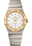 Omega Constellation Co-Axial Master Chronometer Watch - 38 mm Steel And Yellow Gold Case - White -Silvery Dial - Brushed Steel Bracelet - 123.20.38.21.02.006 - Luxury Time NYC