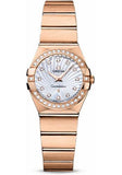 Omega Ladies Constellation Quartz Watch - 24 mm Brushed Red Gold Case - Diamond Bezel - Mother-Of-Pearl Diamond Dial - 123.55.24.60.55.001