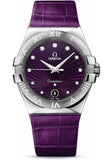 Omega Ladies Constellation Quartz Watch - 35 mm Brushed Steel Case - Purple Diamond Dial - Purple Leather Strap - 123.13.35.60.60.001