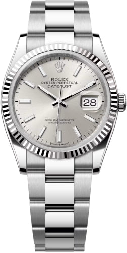 Rolex Datejust 36 White Gold/Steel Silver Index Dial & Fluted Bezel Oyster Bracelet 126234