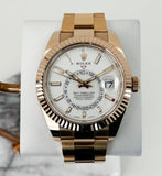 Rolex Sky-Dweller Rose Gold White Index Dial Fluted Bezel Oyster Bracelet 326935 - Luxury Time NYC