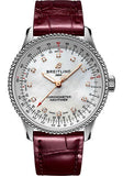 Breitling Navitimer Automatic 35 Watch - Stainless Steel - Mother-Of-Pearl Dial - Burgundy Alligator Leather Strap - Tang Buckle - A17395211A1P1