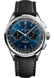 Breitling Premier B01 Chronograph 42 Watch - Stainless Steel - Blue Dial - Anthracite Calfskin Leather Strap - Tang Buckle - AB0118221C1X4