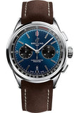 Breitling Premier B01 Chronograph 42 Watch - Stainless Steel - Blue Dial - Brown Calfskin Leather Strap - Tang Buckle - AB0118221C1X2