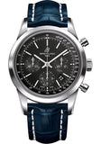 Breitling Transocean Chronograph Watch - Steel - Black Dial - Blue Croco Strap - Tang Buckle - AB015212/BA99/731P/A20BA.1